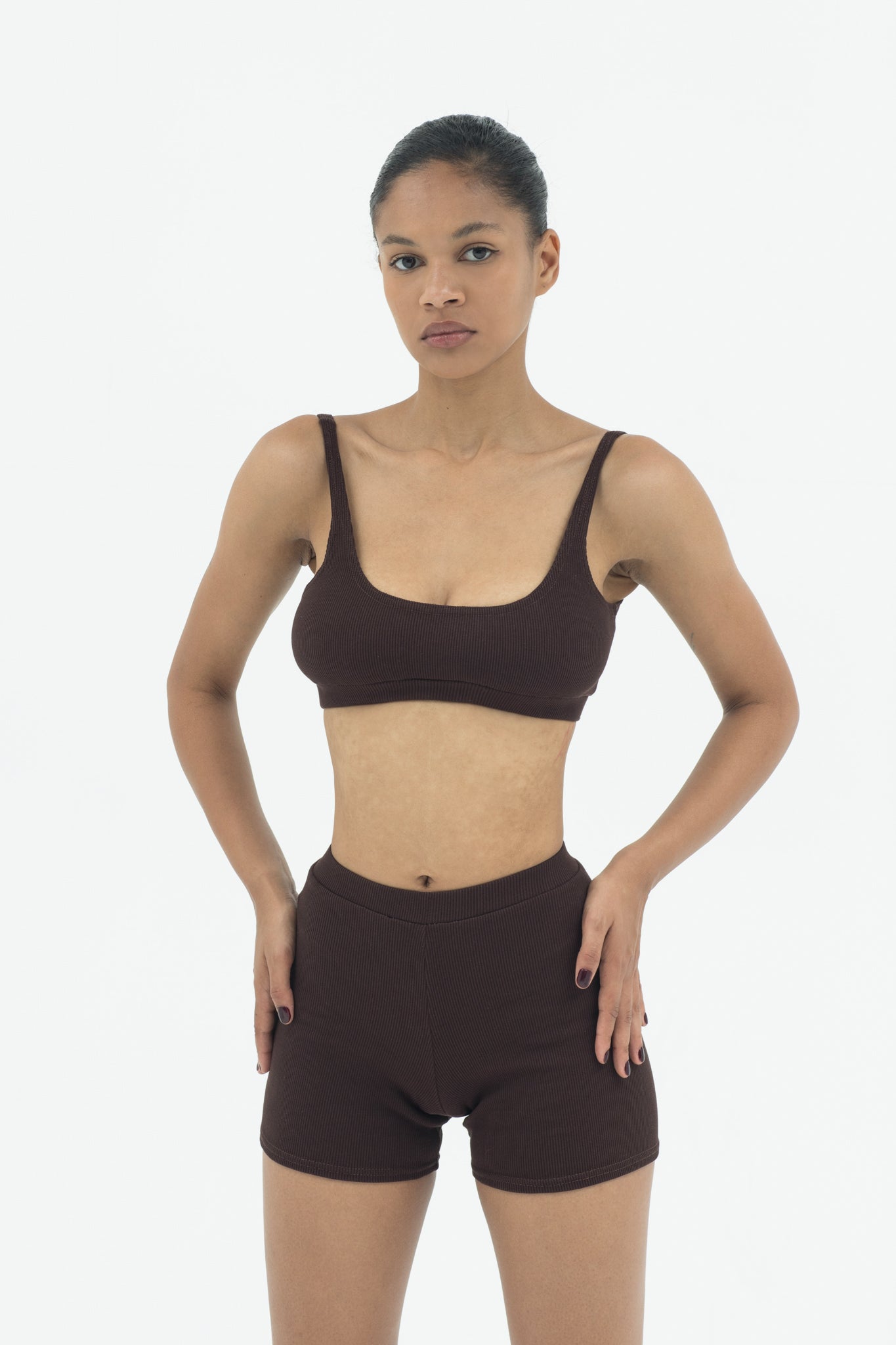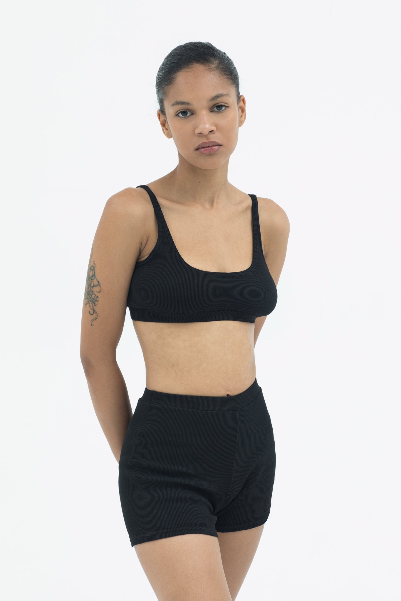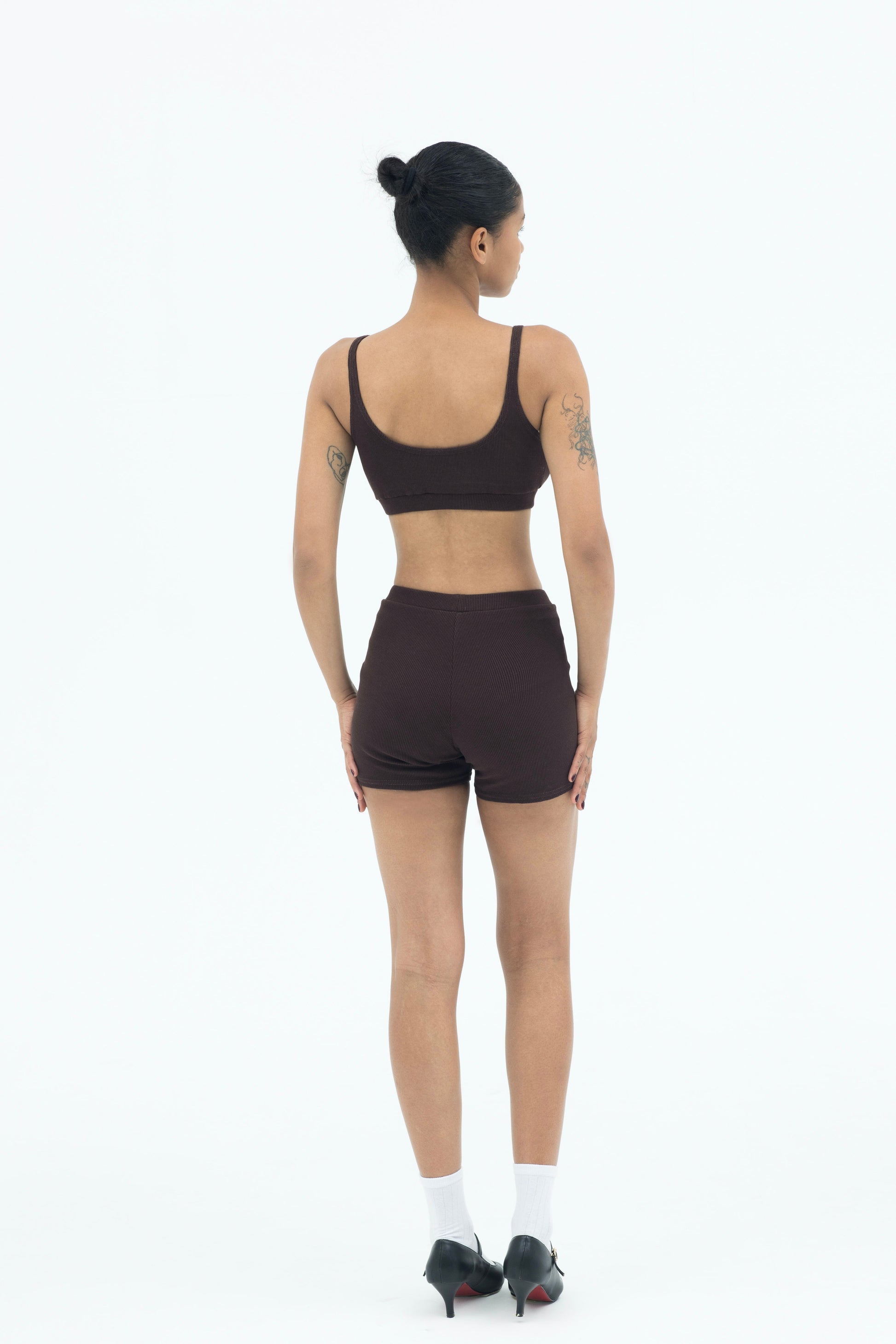 A matching cropped top and shorts set that embodies versatility.