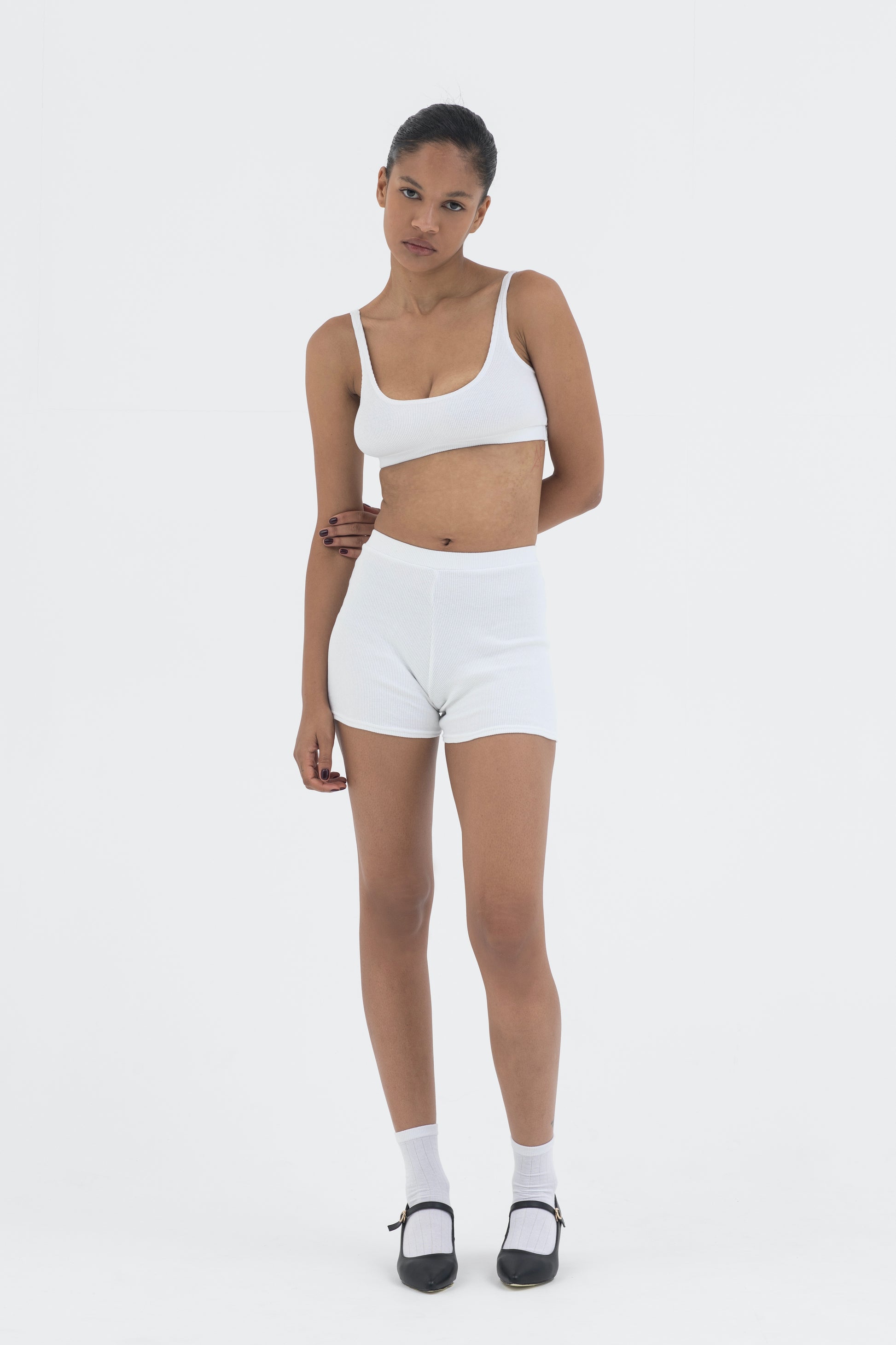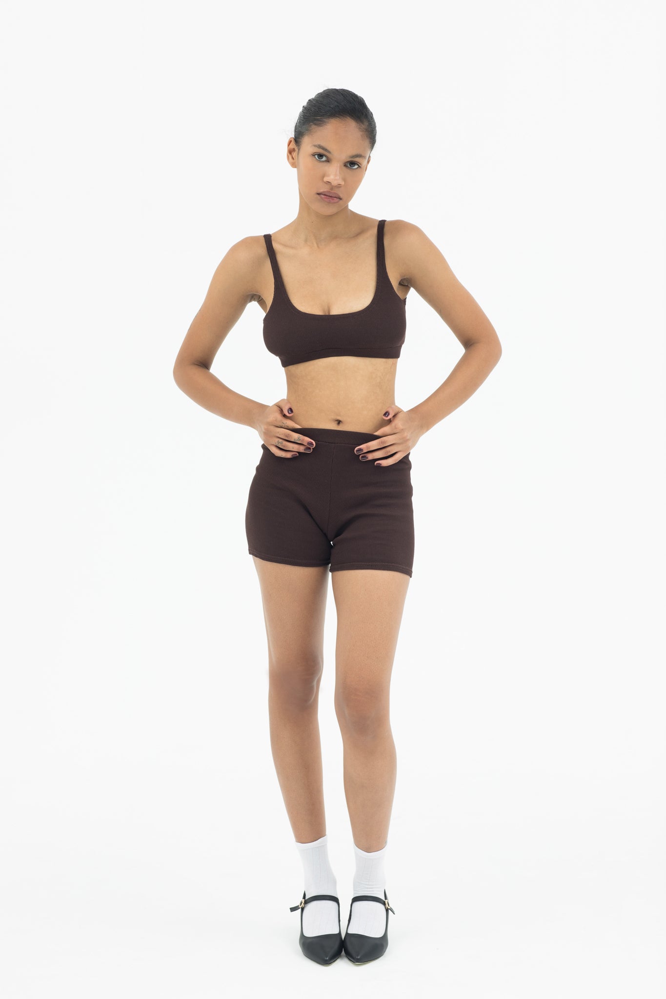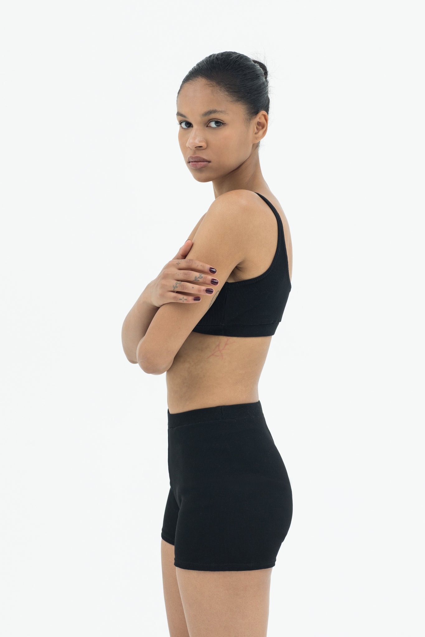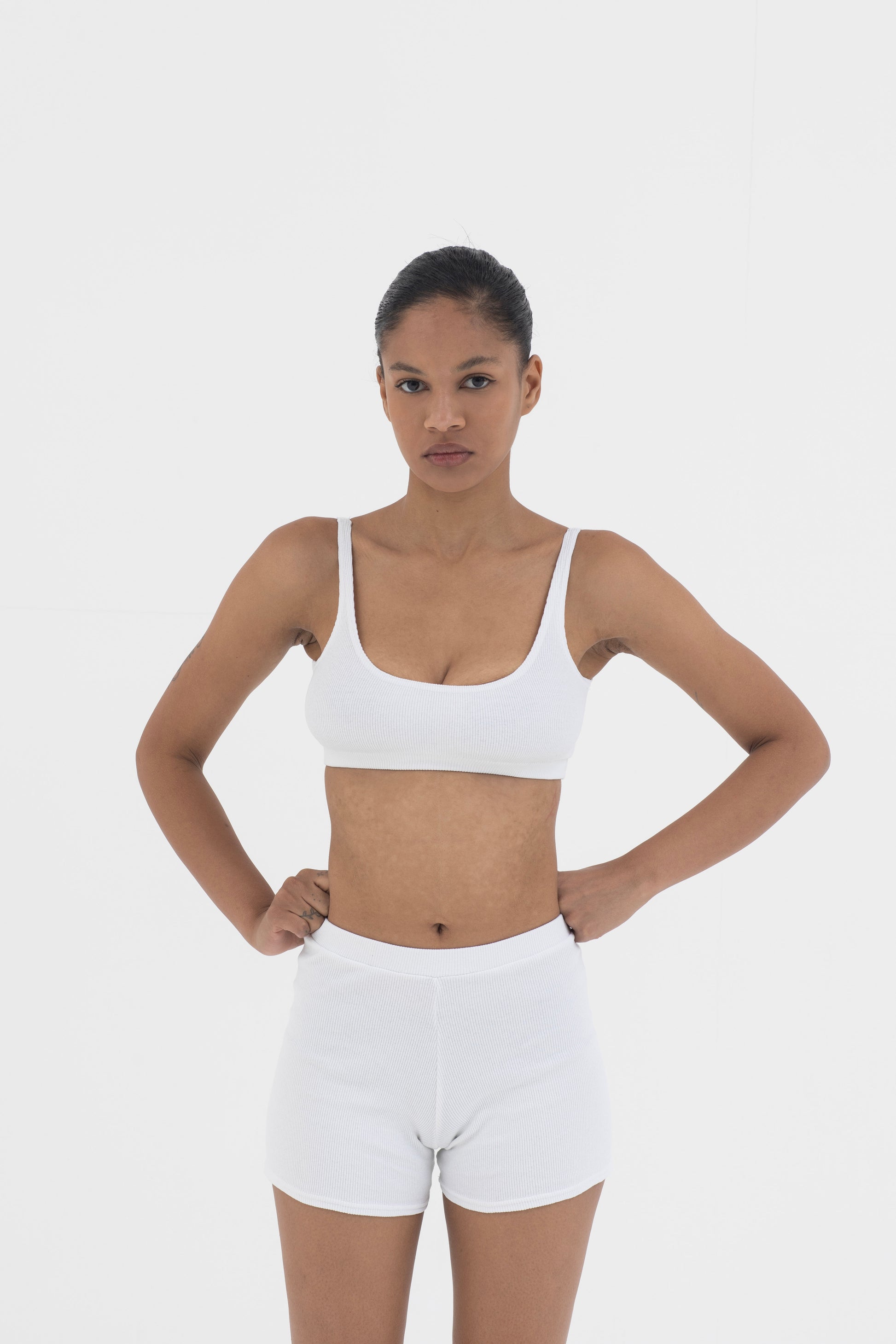 A matching cropped top and shorts set that embodies versatility.
